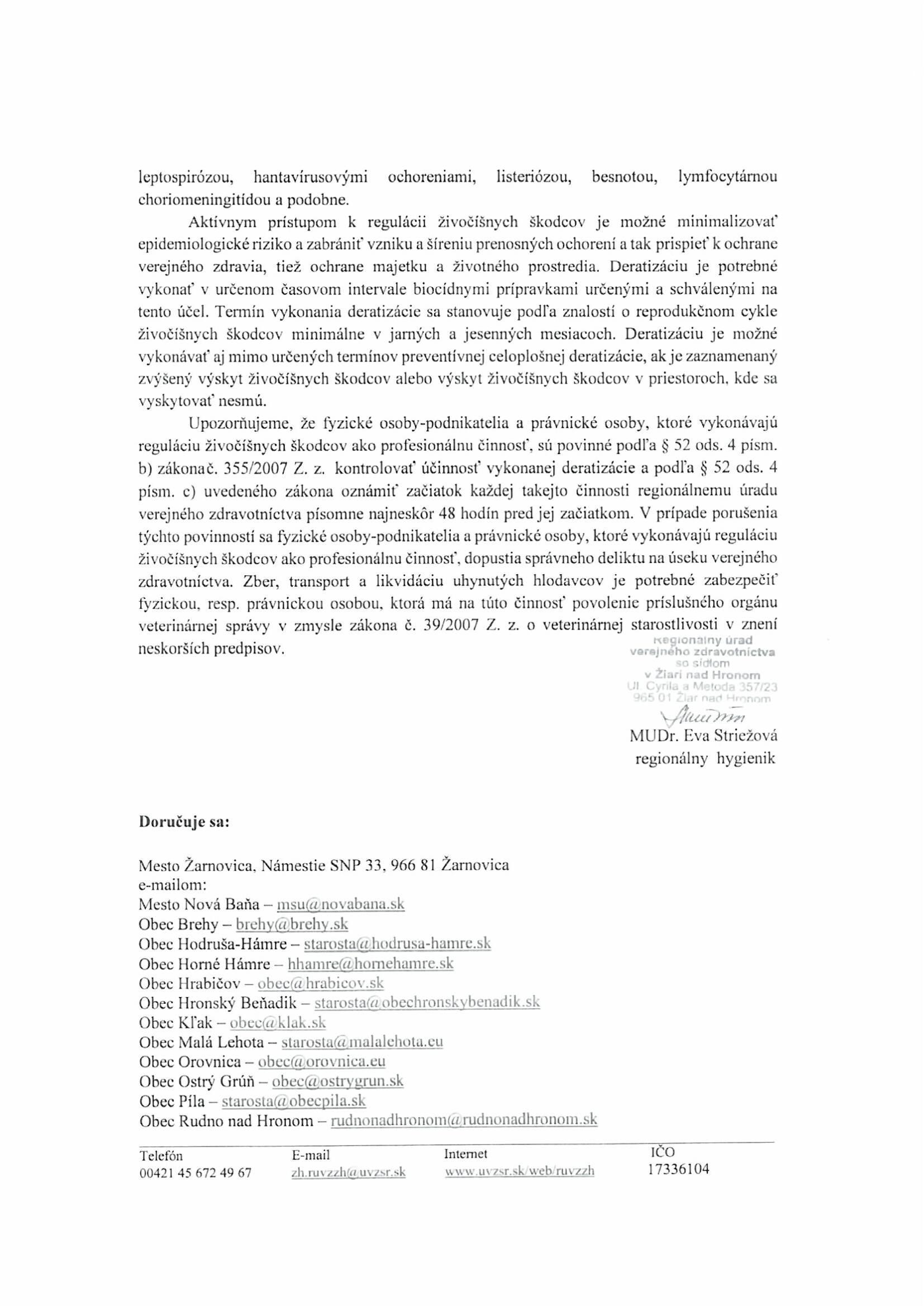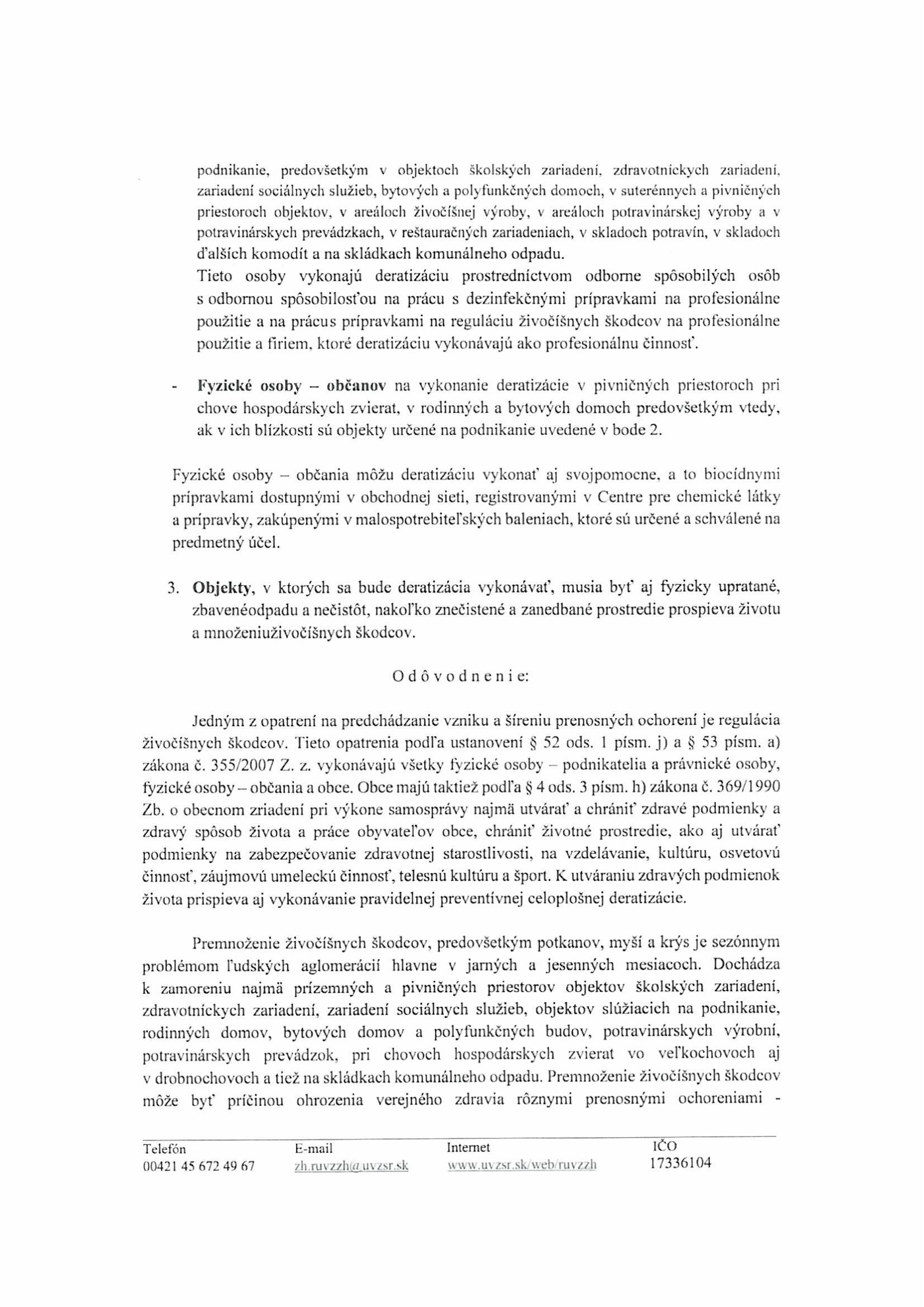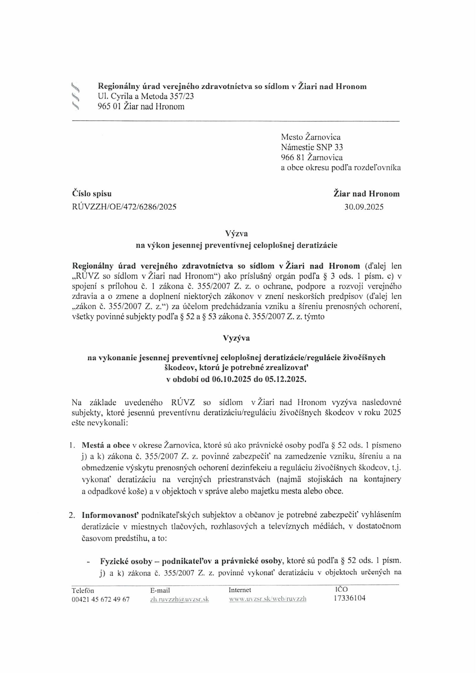 Výzva na výkon jesennej preventívnej celoplošnej deratizácie